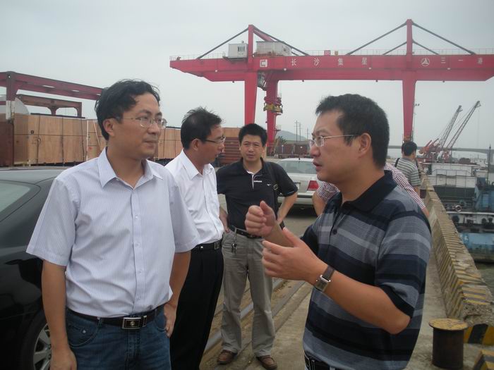 2010年9月8日,湖南省社科院研究員黃海一行在長沙市口岸辦副主任王光輝的陪同下,來長沙新港進行長沙水運口岸建設(shè)的調(diào)研。 長沙新港有限責任公司董事秘書、總經(jīng)理助理辛華,長沙集星集裝箱碼頭有限公司總經(jīng)理龔耀南,總經(jīng)理助理周勇,長沙中理外輪理貨有限公司總經(jīng)理周世杰就長沙港口過去 一年的工作成績、工作亮點、存在的困難和問題,及對長沙水運口岸建設(shè)與發(fā)展的建議和思路作了匯報。 |