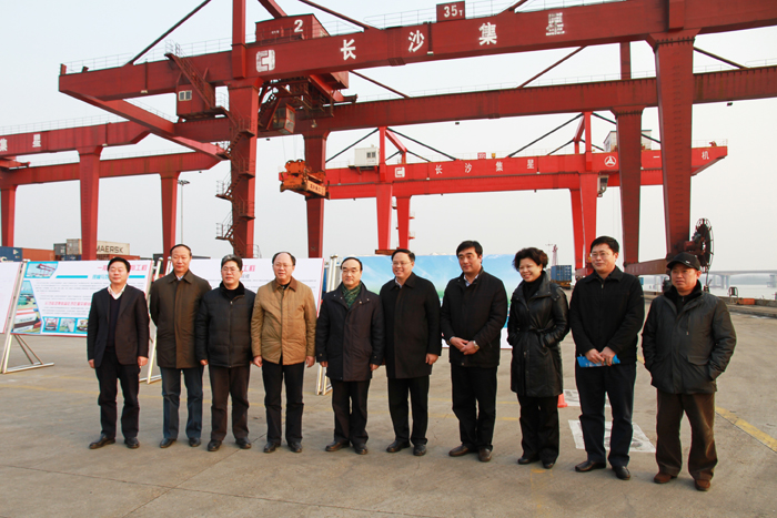 2月10日下午,交通運輸部黨組副書記、副部長翁孟勇一行,在省交通運輸廳黨組書記、廳長賀仁雨,長沙市委副書記、市長張劍飛,市政府副市長何寄華,市政府秘書長、辦公廳主任唐志浩,市政府副秘書長嚴鳳枝,市交通運輸局黨委書記朱東鐵,局長劉明理,副局長姚仲權、陳湘,開福區(qū)區(qū)委書記張迎春,區(qū)長凌勤杰等領導陪同下,來到長沙新港考察調(diào)研。湖南長沙新港有限責任公司董事長、三期工程建設指揮部指揮長石道國,董事、常務副總經(jīng)理唐忠良,董事趙赤書,副總經(jīng)理張韜,長沙集星集裝箱碼頭有限公司副總經(jīng)理辛華,總經(jīng)理助理周勇接待。 在長沙新港集裝箱碼頭上,三期工程建設指揮部副指揮長、新港公司副總經(jīng)理張韜介紹了長沙新港一、二期工程運營情況,匯報了三期工程建設規(guī)模及建設情況。翁孟勇副部長強調(diào):長沙新港變化一次比一次大,當前要借助湖南加大水運發(fā)展力度的有利契機,加快樞紐、港口和湘江2000噸級航道提升建設,更好地服務經(jīng)濟社會和航運的持續(xù)發(fā)展。 |