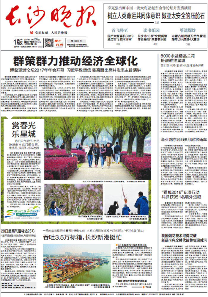 長(zhǎng)沙市第十三次黨代會(huì)上,省委常委、市委書(shū)記易煉紅提出長(zhǎng)沙將建設(shè)全國(guó)中心城市,全力打造“三個(gè)中心”,長(zhǎng)沙新港作為水運(yùn)交通樞紐,對(duì)于我市打造國(guó)家交通物流中心意義重大,港口經(jīng)濟(jì)不斷升溫。今年一季度,港口生產(chǎn)形勢(shì)步步看漲,生產(chǎn)數(shù)據(jù)屢屢刷新。一季度共完成港口吞吐量166.5萬(wàn)噸,其中集裝箱吞吐3.65萬(wàn)標(biāo)箱,較去年同期相比增長(zhǎng)44%,件雜散貨吞吐93.5萬(wàn)噸,較去年同期相比增長(zhǎng)60%。 眾所周知,航運(yùn)業(yè)是經(jīng)濟(jì)運(yùn)行的晴雨表,在全球經(jīng)濟(jì)下行壓力和航運(yùn)業(yè)一季度內(nèi)傳統(tǒng)淡季的背景下,借助“一帶一路”和長(zhǎng)江經(jīng)濟(jì)帶的國(guó)家戰(zhàn)略,長(zhǎng)沙新港一季度強(qiáng)勢(shì)“亮相”,吞吐量逆勢(shì)增長(zhǎng),給全市的經(jīng)濟(jì)指標(biāo)注入了一股亮眼色彩,各大媒體爭(zhēng)相報(bào)道。3月下旬,《長(zhǎng)沙晚報(bào)》、《湖南日?qǐng)?bào)》、湖南衛(wèi)視、湖南經(jīng)視、紅網(wǎng)等主流媒體相繼到港采訪,湖南長(zhǎng)沙新港有限責(zé)任公司董事長(zhǎng)、總經(jīng)理唐忠良接受采訪。 “今年港口來(lái)勢(shì)很好,一季度,港口件雜散貨、集裝箱吞吐量雙雙創(chuàng)了新高。件雜散貨一季度吐吞量93.5萬(wàn)噸,同比增長(zhǎng)60%;集裝箱吞吐3.65萬(wàn)標(biāo)箱,同比增長(zhǎng)44%。其中,港口集裝箱貨物以外貿(mào)為主,主要通過(guò)上海港運(yùn)至世界各地,一季度集裝箱量的迅猛增長(zhǎng),反映出港口物流對(duì)外向型經(jīng)濟(jì)發(fā)展的重要助推作用。”唐總興奮地向記者介紹道。 據(jù)統(tǒng)計(jì),2016年長(zhǎng)沙新港共完成貨物吞吐量614萬(wàn)噸,同比增長(zhǎng)12.4%,創(chuàng)歷史新高。根據(jù)今年港口貨運(yùn)吞吐量的強(qiáng)勁增長(zhǎng)勢(shì)頭,今年有望再創(chuàng)歷史新高,特別是港口集裝箱,計(jì)劃突破14萬(wàn)標(biāo)箱,有望達(dá)到15萬(wàn)標(biāo)箱,創(chuàng)歷史新高。 港口生產(chǎn)熱火朝天,三期建設(shè)馬不停蹄。唐總介紹道:“今年4月,新港三期工程南片區(qū)將正式進(jìn)場(chǎng)施工,預(yù)計(jì)2018年底三期工程全部建成并投入運(yùn)營(yíng),預(yù)計(jì)2018年,長(zhǎng)沙港霞凝港區(qū)三期工程將竣工投產(chǎn)。”屆時(shí),長(zhǎng)沙新港年吞吐量將達(dá)到1200萬(wàn)噸,邁入千萬(wàn)噸級(jí)港口行列。長(zhǎng)沙港將實(shí)現(xiàn)集進(jìn)出口集裝箱、大宗件雜貨、滾裝、散貨裝卸運(yùn)輸于一體,“水鐵”無(wú)縫對(duì)接的現(xiàn)代化“黃金港口”,成為我市打造“交通物流中心”不可或缺的物流公共平臺(tái)。 3月25日,湖南經(jīng)視“經(jīng)視觀察”欄目播出新聞專題節(jié)目《打通這一公里 企業(yè)可省千萬(wàn)元》,重點(diǎn)報(bào)道長(zhǎng)沙新港“鐵水聯(lián)運(yùn)”項(xiàng)目;3月26日《長(zhǎng)沙晚報(bào)》A01版、28日《湖南日?qǐng)?bào)》頭版分別以《吞吐3.5萬(wàn)噸標(biāo)箱,長(zhǎng)沙新港挺忙》和《長(zhǎng)沙新港好繁忙》為題,進(jìn)行大篇幅圖文報(bào)道,《掌上長(zhǎng)沙》、《新湖南》客戶端分別對(duì)新聞進(jìn)行了轉(zhuǎn)載。長(zhǎng)沙新港在各大主流媒體頻繁“刷臉”,再一次成為社會(huì)關(guān)注的焦點(diǎn)。 |