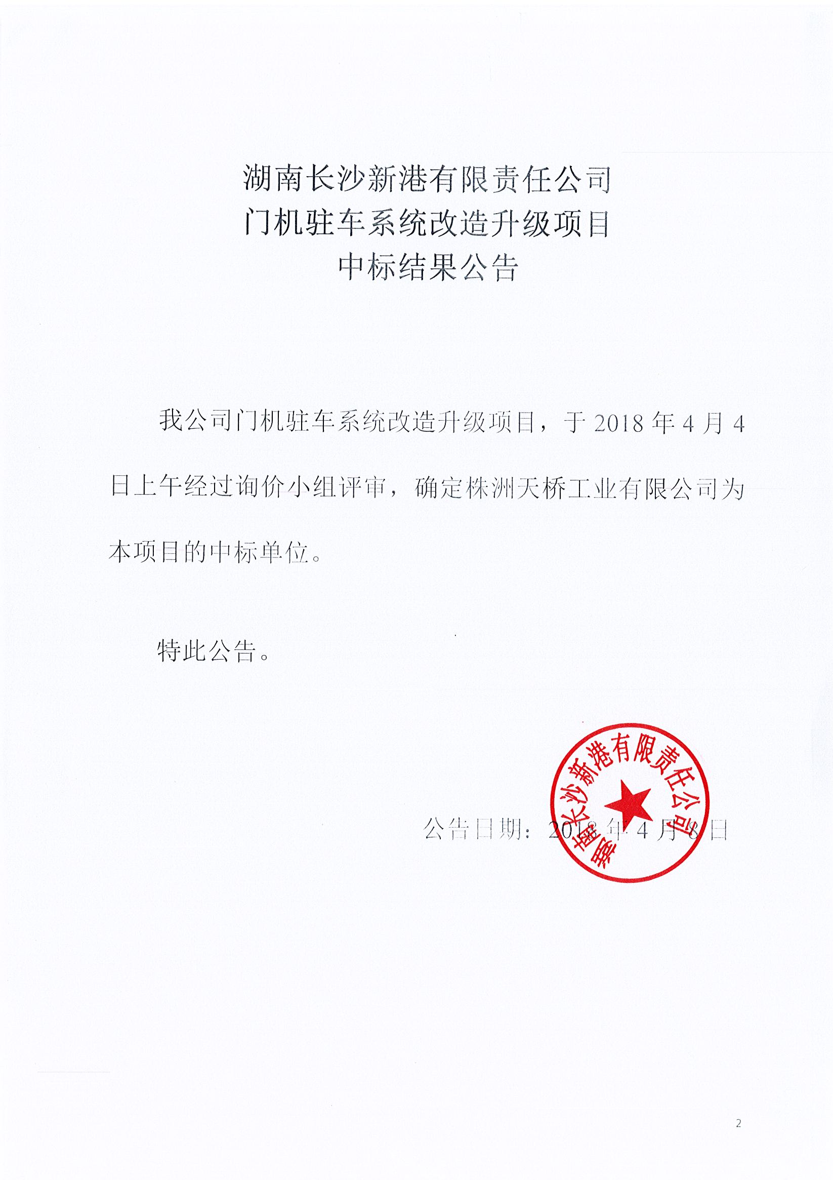 湖南長沙新港有限責(zé)任公司 門機(jī)駐車系統(tǒng)改造升級項目中標(biāo)結(jié)果公告