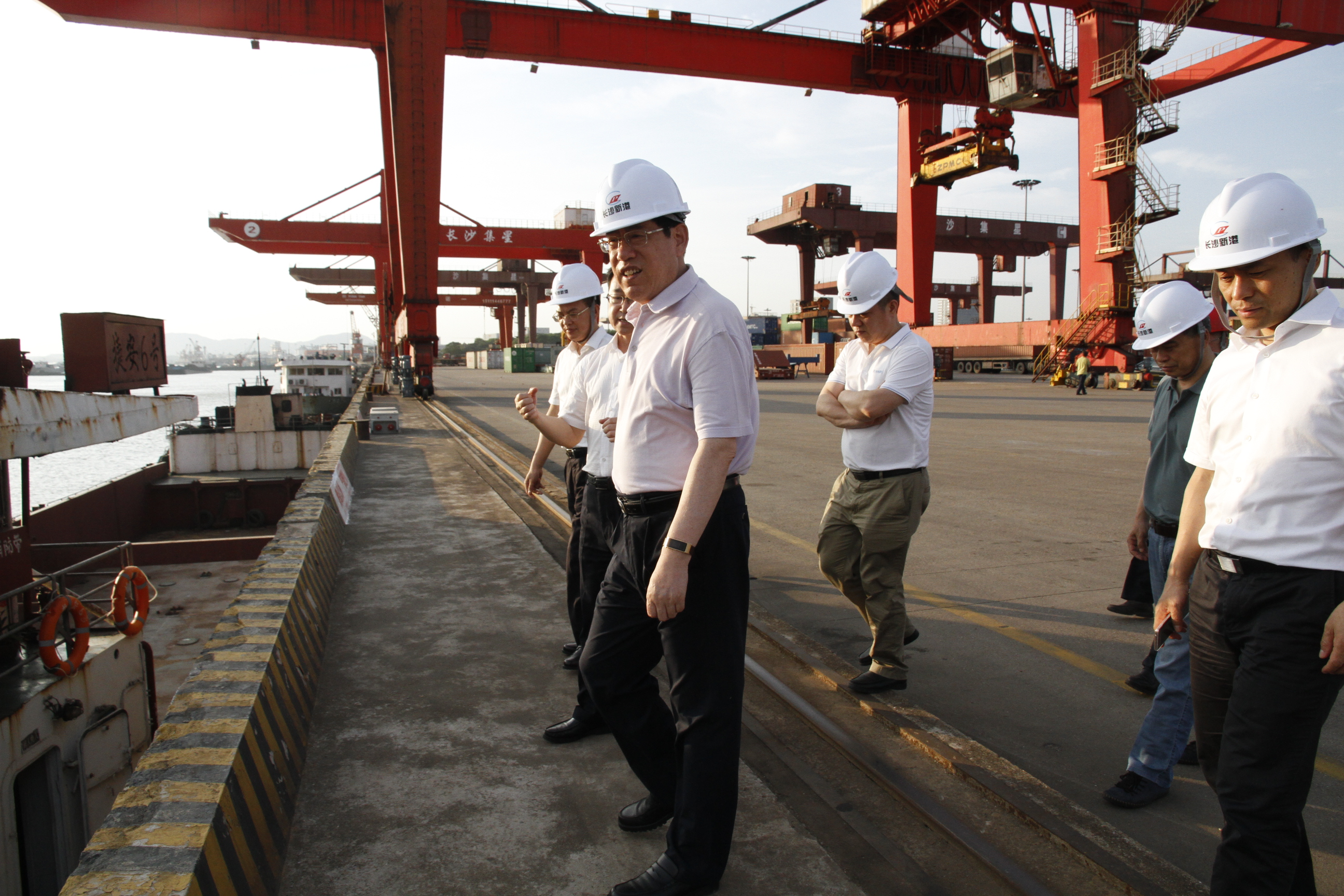 2018年5月15日,湖南省人大常委會黨組成員,省十二屆人大常委會黨組書記、副主任韓永文一行調(diào)研長沙新港,金開區(qū)相關(guān)領(lǐng)導(dǎo)陪同調(diào)研,湖南長沙新港有限責(zé)任公司黨委書記、董事長、總經(jīng)理唐忠良接待,并匯報(bào)公司情況。