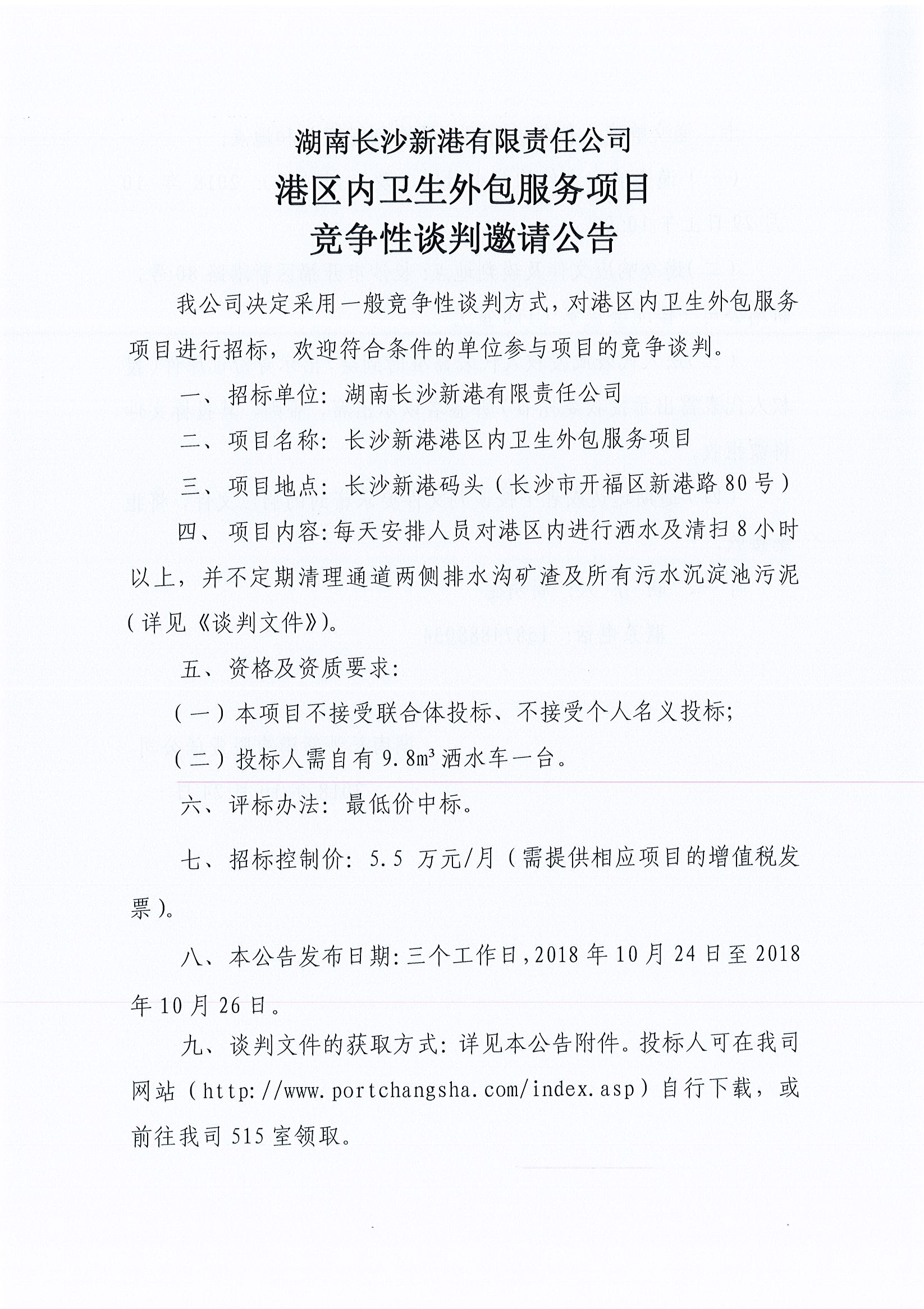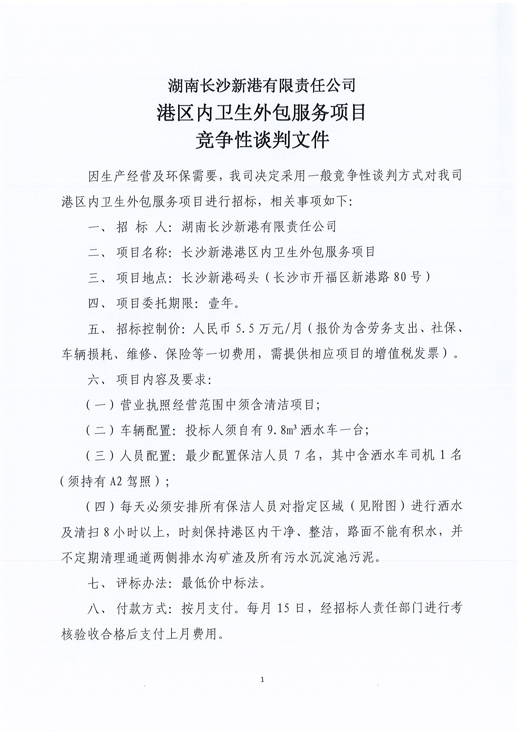 湖南長沙新港有限責任公司 港區(qū)內衛(wèi)生外包服務競爭性談判邀請公告