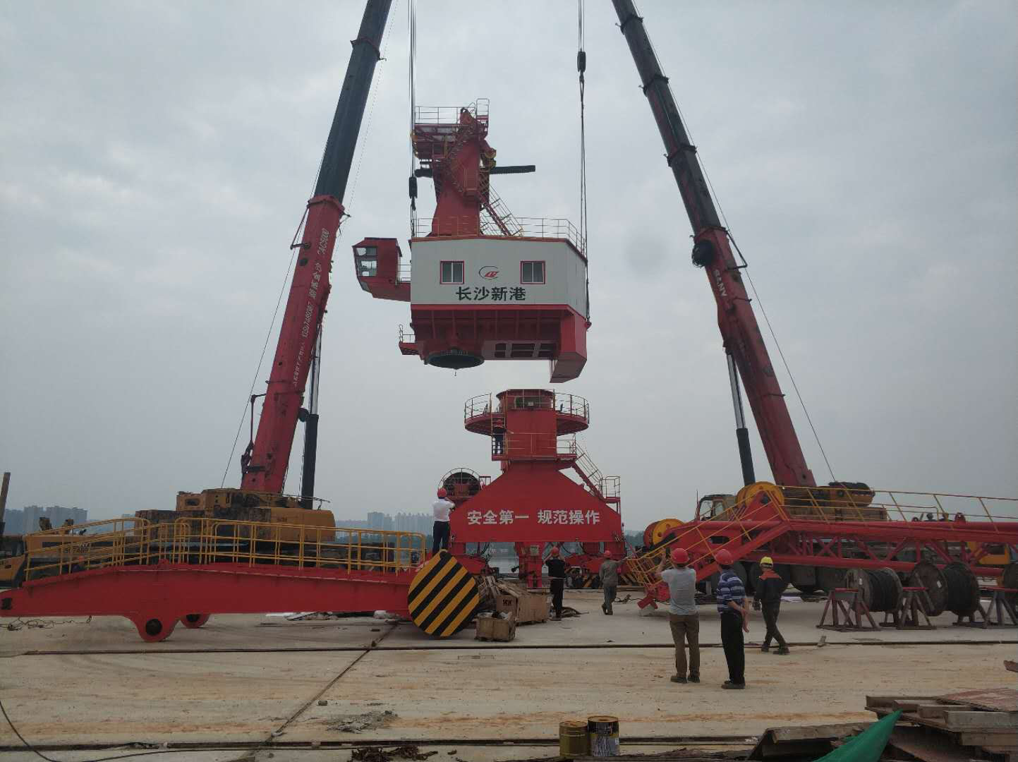 南片生產(chǎn)添助力 門座式起重機(jī)順利安裝 長(zhǎng)沙港霞凝港區(qū)三期工程上游新建2000噸級(jí)(兼顧3000噸級(jí))多用途泊位2個(gè),滾裝泊位1個(gè)。滾裝泊位目前已完成土建實(shí)體、混凝土道路施工,配套鋼引橋制作安裝、躉船制安錨定及兩者的連接工作,已經(jīng)具備投產(chǎn)條件;多用途泊位主體工程已基本完成,正在進(jìn)行附屬工程掃尾工作。 長(zhǎng)沙港霞凝港區(qū)三期工程上游多用途泊位計(jì)劃配置2臺(tái)門座式起重機(jī);3月上旬,湖南中鐵五新重工有限公司港機(jī)安裝隊(duì)開(kāi)始安裝,經(jīng)過(guò)一個(gè)多月不懈努力,大車行走結(jié)構(gòu)、轉(zhuǎn)臺(tái)、臂架、圓通門架等都已現(xiàn)場(chǎng)組裝完成。5月4日、6日,25t-25m、45t-25m門座式起重機(jī)順利完成轉(zhuǎn)臺(tái)及臂架等上部結(jié)構(gòu)的合攏,主體結(jié)構(gòu)一次性吊裝成功。在設(shè)備構(gòu)件吊裝前,新港公司組織專家對(duì)吊裝方案的安全性進(jìn)行了專家論證,確保框架碼頭承受荷載不大于設(shè)計(jì)荷載,以保證機(jī)械設(shè)備吊裝安全。