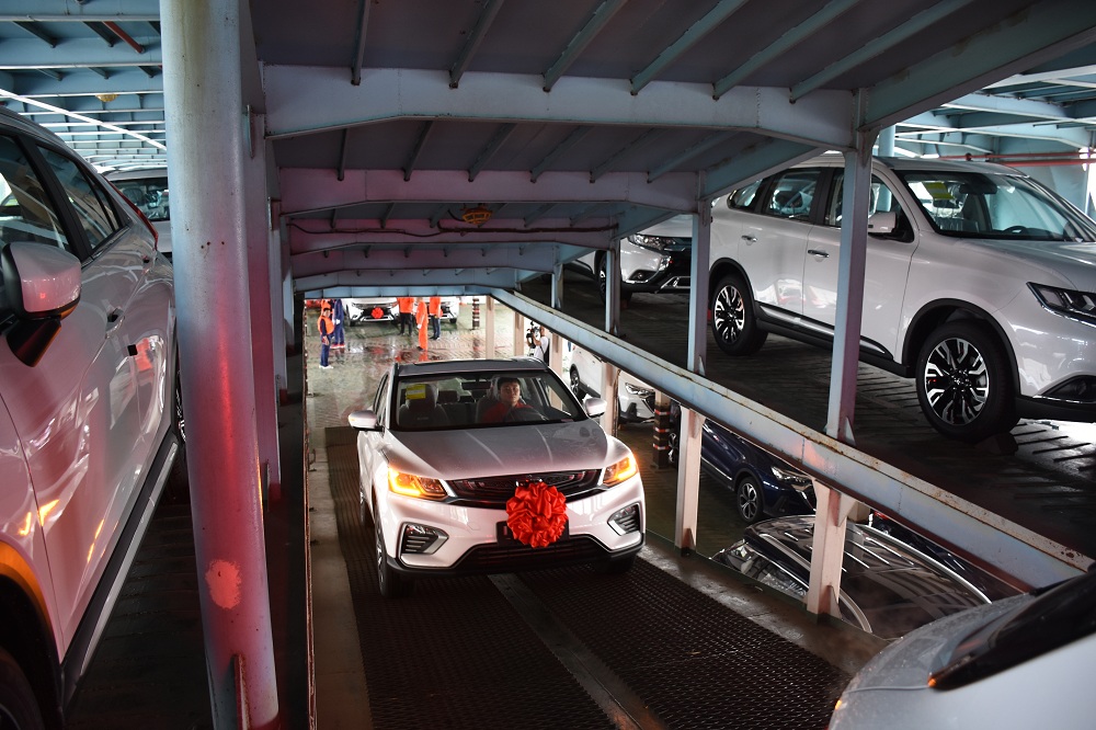 6月18日,隨著一聲汽笛鳴響,滾裝船“港達6號”輪駛離交通集團長沙新港汽車滾裝碼頭,船上裝載了廣汽三菱、廣汽菲克、北汽、吉利、馬自達等品牌的汽車近200臺,將于20小時后抵達武漢,輻射至川渝和華東地區(qū)。這是經(jīng)過一年半的緊張施工,克服諸多困難,在集團堅強領導下,長沙新港汽車滾裝碼頭發(fā)送的首條航班,標志著湖南省首個專業(yè)汽車滾裝碼頭正式投入試運行,徹底結束湘江商品汽車不能滾裝運輸?shù)臍v史。省人民政府辦公廳巡視員羅建軍,省水運管理局黨委書記、局長李建斌,市人民政府副市長邱繼興及行業(yè)相關部門領導,各大港口、物流商和汽車主機廠嘉賓出席本次首航儀式。