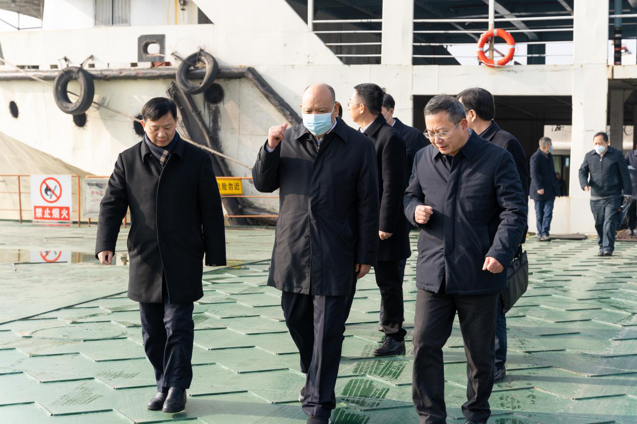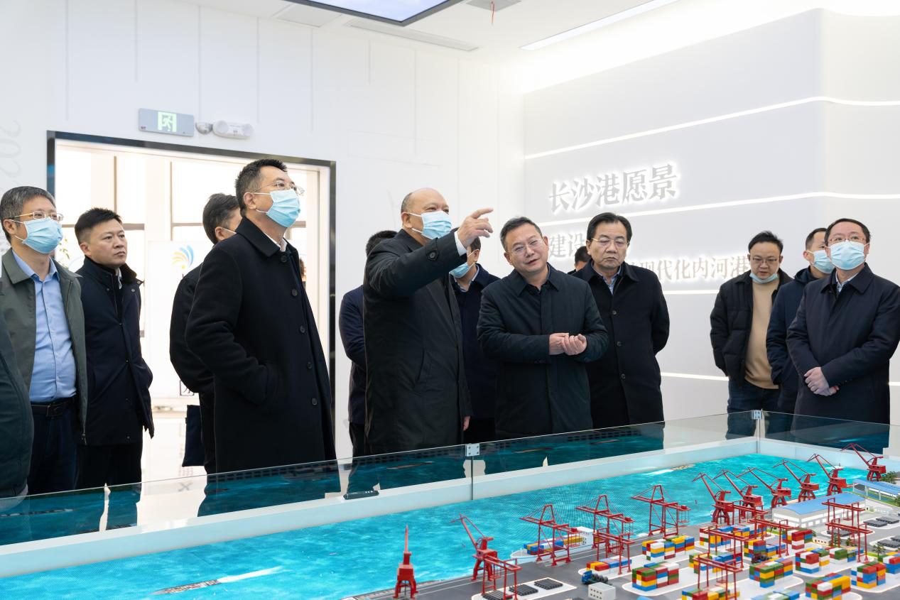 副省長李建中調(diào)研長沙交通集團長沙新港    2月15日,副省長李建中調(diào)研湘江航道及港口建設發(fā)展情況,來到長沙港霞凝港區(qū)實地考察。長沙交通集團黨委書記、董事長李建國,黨委副書記、董事、總經(jīng)理劉俊武在長沙新港陪同考察。 李建中一行乘船從長沙新港滾裝碼頭上岸,先后參觀了長沙新港企業(yè)文化展廳、智能調(diào)度中心,李建中詳細了解了長沙新港港口建設、作業(yè)裝卸能力、智慧港口建設等情況。 李建中指出,要全面貫徹落實黨的二十大精神和省委、省政府決策部署,落實“統(tǒng)一平臺、統(tǒng)分結合,水港協(xié)調(diào)、港產(chǎn)聯(lián)動,市場為主、行政推動”的發(fā)展方向,做到市場拓展與港口運行“兩手抓”,打造湖南區(qū)域港口統(tǒng)一品牌,加快推動港口高質量發(fā)展。 李建中強調(diào),推進全省港口集約化發(fā)展,加大對湘、資、沅、澧“四水”千噸級碼頭整合力度,形成規(guī)模效應;優(yōu)化港口發(fā)展資源配置,為港口預留發(fā)展空間;發(fā)揮多式聯(lián)運優(yōu)勢,形成港區(qū)優(yōu)勢互補、公鐵水高效聯(lián)運、產(chǎn)業(yè)無縫銜接的港口發(fā)展體系;做好臨港經(jīng)濟文章,帶動相關產(chǎn)業(yè),支持優(yōu)勢產(chǎn)業(yè),積極引導產(chǎn)業(yè)臨港聚集;切實抓好安全生產(chǎn)和生態(tài)環(huán)境保護,提升港口安全發(fā)展、綠色發(fā)展水平。 |