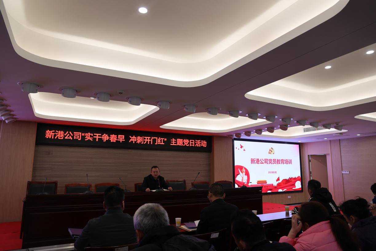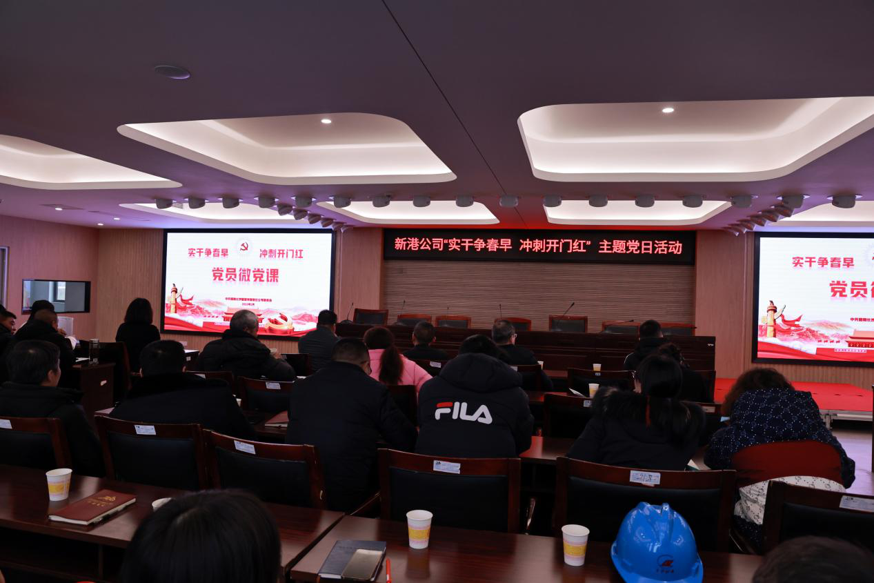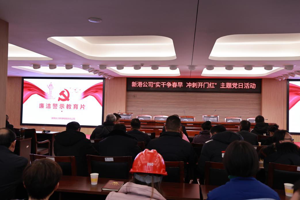 實(shí)干爭春早 沖刺開門紅 中共湖南長沙新港有限責(zé)任公司委員會主題黨日活動 為扎實(shí)擔(dān)當(dāng)起學(xué)習(xí)宣傳貫徹黨的二十大精神排頭兵的光榮使命,教育引導(dǎo)廣大黨員干部從黨的二十大專題學(xué)習(xí)汲取精神力量,在新的一年里,進(jìn)一步堅(jiān)定理想信念,主動肩負(fù)時(shí)代重任,開啟新征程。2月17日上午,長沙交通集團(tuán)新港公司開展學(xué)習(xí)貫徹黨的二十大精神“實(shí)干爭春早,沖刺開門紅”主題黨日活動,此次活動,以“微影片、微黨課、微實(shí)事、黨員教育培訓(xùn)”等多種形式推動黨的二十大精神落地見效。公司黨委副書記、董事、總經(jīng)理辛華作宣講,班子成員、公司中層管理人員、各支部黨員共76人參加活動。 深學(xué)悟初心-【微影片】 全體黨員干部集中觀看2022年度湖南反腐警示片《忠誠與背叛》。通過觀看警示教育片,引導(dǎo)黨員上好廉潔教育“新年第一課”,教育全司廣大黨員干部面對誘惑要保持清醒的頭腦,自覺抵制各種腐敗現(xiàn)象的侵蝕,牢固樹立正確的人生觀、利益觀和權(quán)力觀,干干凈凈做事,老老實(shí)實(shí)做人。  篤行求實(shí)效-【微黨課】 學(xué)理論之思,踐初心之行。新港公司以“實(shí)干爭春早,沖刺開門紅”為主題,從七個(gè)黨支部里的推選黨員干部帶頭講,鼓勵(lì)黨員人人上臺講【微黨課】,突出“微”這個(gè)形式,聚焦“黨”這個(gè)靈魂,利用“課”這個(gè)載體,教育廣大黨員從不同層面、不同角度深刻領(lǐng)會黨的理論創(chuàng)新成果,以新思想、新觀念、新思路、新舉措,開創(chuàng)公司高質(zhì)量發(fā)展新局面。