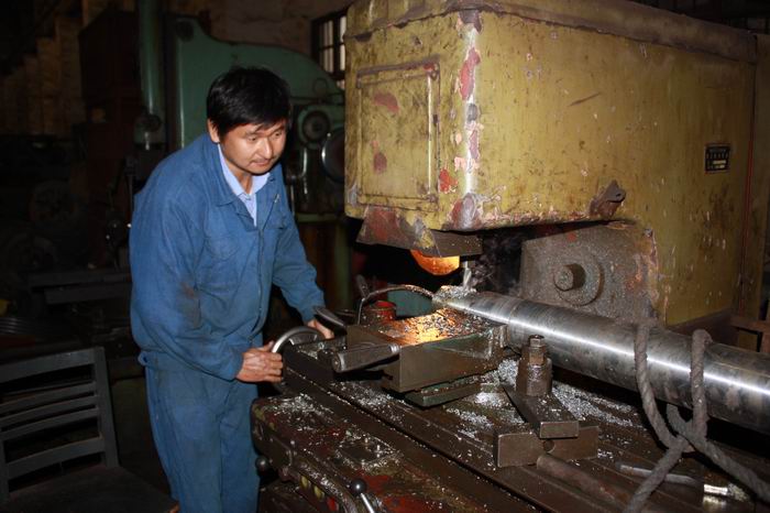 楊建安同志從來都是碰到越有難度的加工活,他越有興趣,越喜歡從中摸索,敢于接受任何技術(shù)上的挑戰(zhàn),這次也不例外。通過對需維修設(shè)備的了解和初步分析,他想出了最簡單、最快捷的拆裝方法,用最短的時(shí)間將已經(jīng)斷裂的傳動軸拆除了出來。他充足的干勁、熟練的操作都感染著在場所有的人。只見他認(rèn)真地挑選好材料毛坯,細(xì)致地磨好所需刀具,一絲不茍、聚精會神,干起活來。在他的精心操作下,經(jīng)過兩個多小時(shí)搶制,新的傳動軸加工出來了,且規(guī)格和標(biāo)準(zhǔn)都符合裝配要求,在場的所有人才放心地松了口氣。