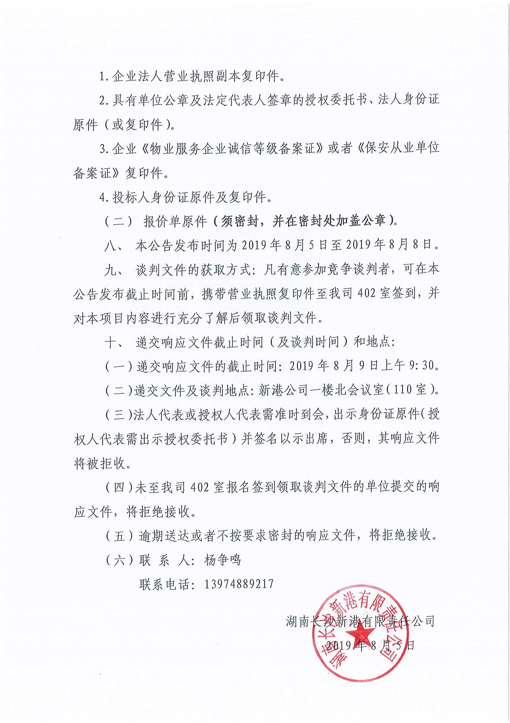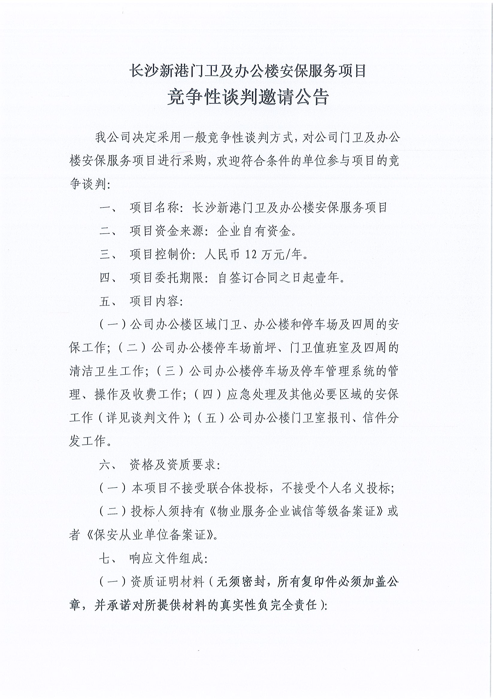 長(zhǎng)沙新港門衛(wèi)及辦公樓安保服務(wù)項(xiàng)目競(jìng)爭(zhēng)性談判邀請(qǐng)公告